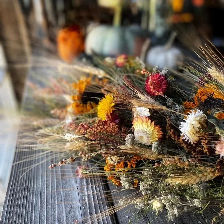Join Rafael in our Flower Barn for a hands-on workshop where you’ll create a signature Fall or Thanksgiving everlasting centerpiece—perfect for bringing seasonal charm to your table and becoming a cherished holiday tradition. Using dried flowers harvested from our own fields, Rafael will guide you step by step in crafting a piece that’s not only unique but truly stunning.